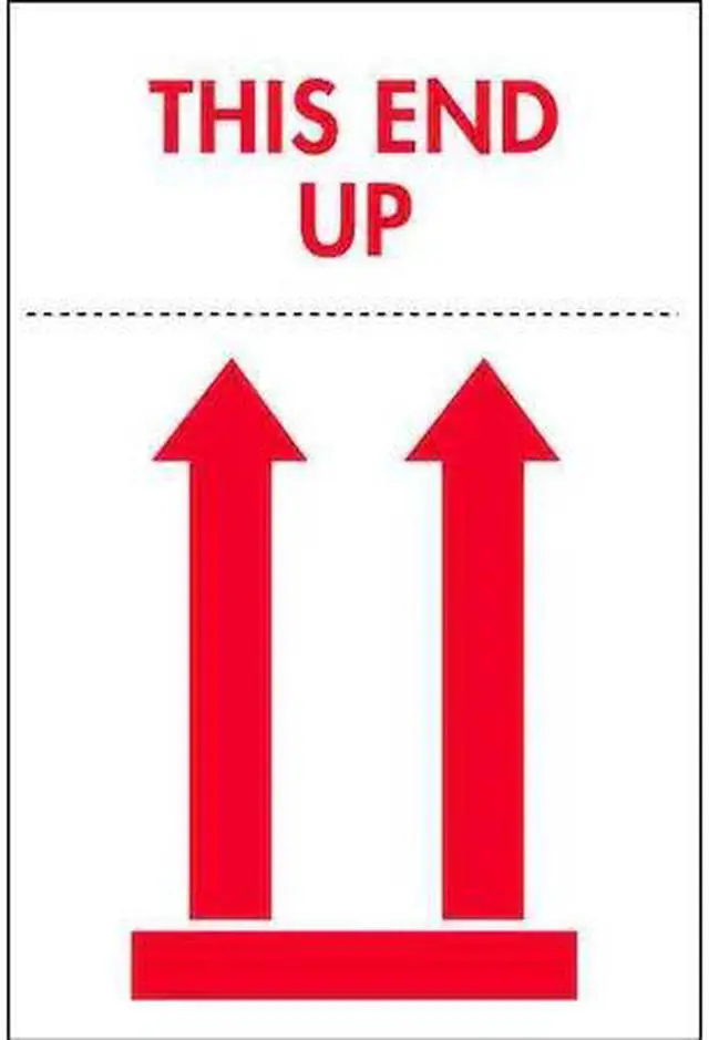 Instructional Handling Label, Language English, Primary Label Subject Shipping Arrows, Message Header Arrows with Message, Message This End Up, Label Width 2 in, Label Height 3 in, Material Adhesive Back, Paper, Background Color White, Labels per Roll 500, Package Quantity 500. This item has been restricted from sale in the following state (s): []