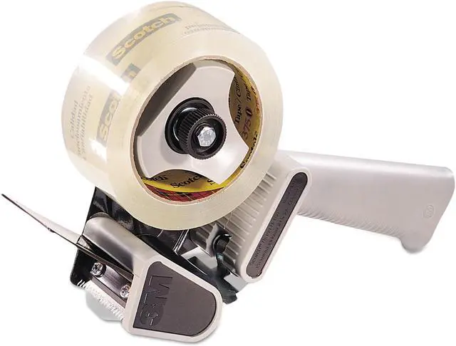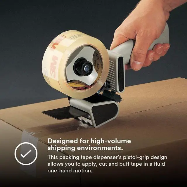 Scotch Box Sealing Tape Dispenser H180 is a portable, hand-held tape dispenser. This box sealing tape dispenser comes with a pistol-grip design for easy application. Tack, roll, buff and tear in one fluid motion. The lightweight and rugged construction of this box tape dispenser creates a durable, yet portable, tool for sealing, combining, reinforcing and bundling.