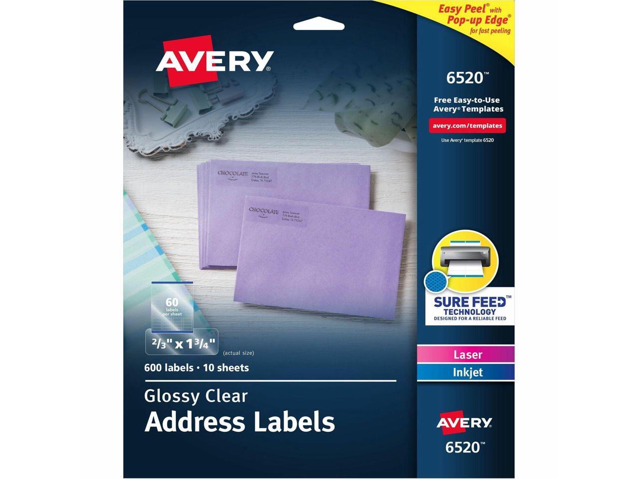 Avery 6520 Easy Peel Address Labels, 2/3" x 1-3/4", Glossy, Clear - 600 Labels