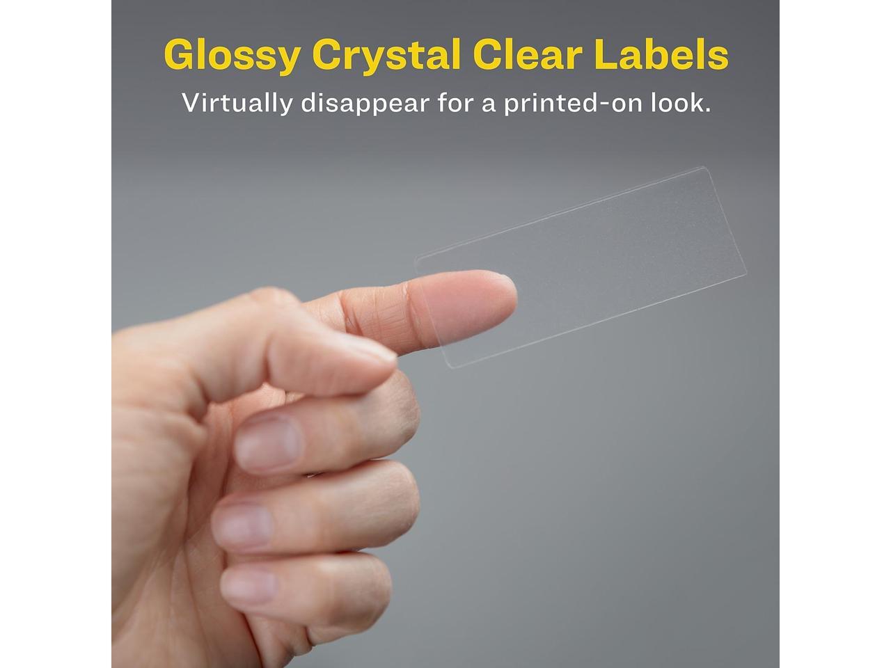 - Clear glossy labels add a custom printed-on look to almost any item