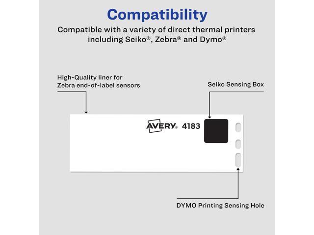 - Compatible with a variety of direct thermal printers including DYMO®, Seiko® and Zebra®; label comparable to DYMO 30252