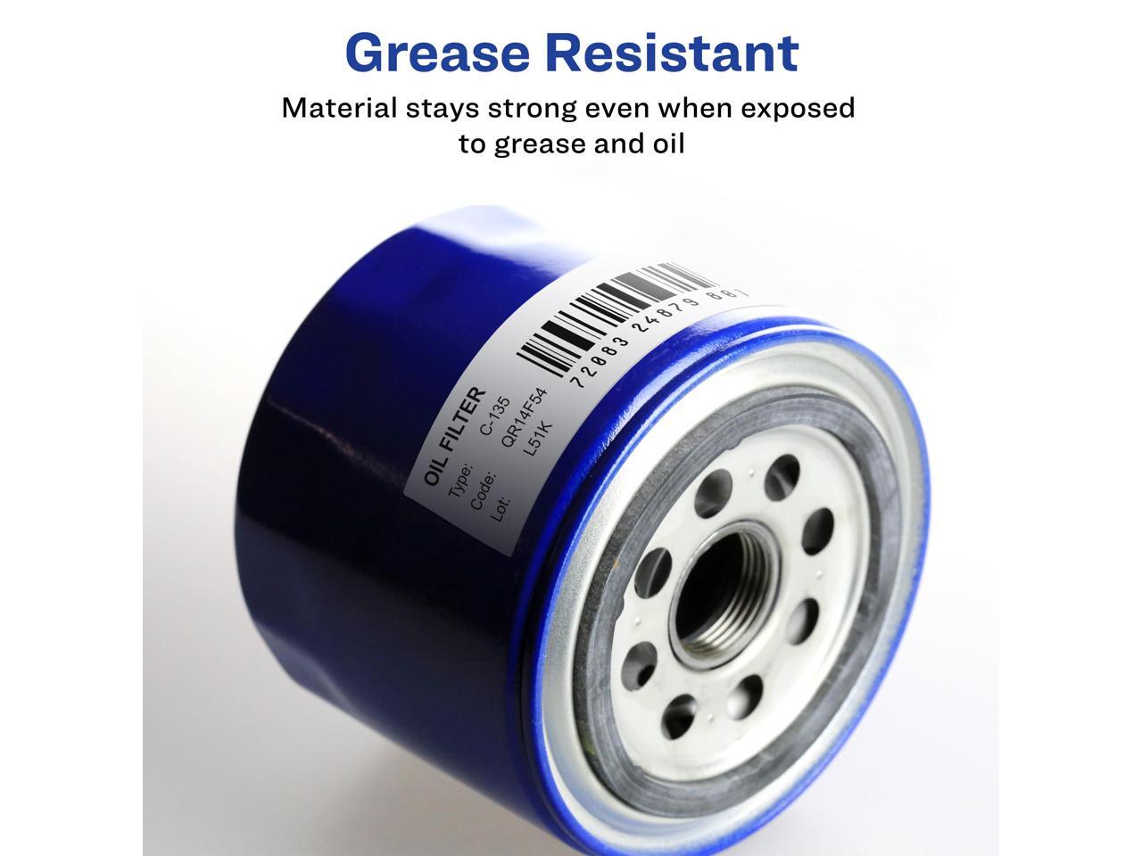 - Water resistant label material also resists scratches, smudges and grease staying legible through any labeling project