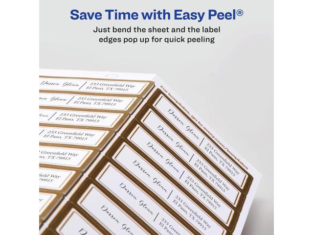 Avery Matte White Address Labels with Metallic Gold Borders, 1" x 2-5/8", 300 Blank Address Labels (6540)