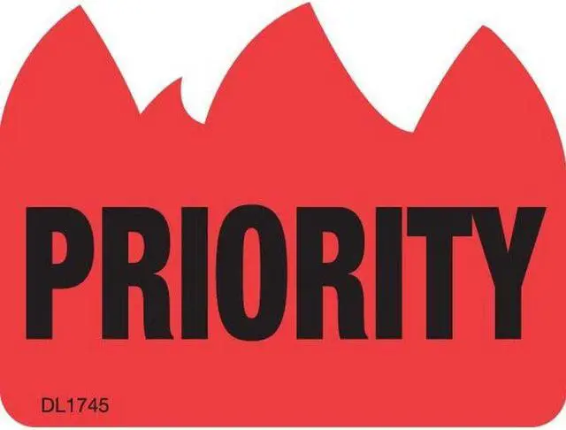 Labels Measure: 1-1/2" x 2", 500 Labels per Roll, Label Color: FLR Red/Black, "PRIORITY", Paper Label Stock On Silicone Coated Release Paper, Made in USA, Labels Ship in 2-3 Days