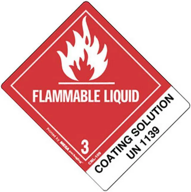 UN1139 D. O. T. Flammable Liquid Labels, Labels Measure: 4" x 4-3/4" (4" x 4.75" ), 500 Labels per Roll, Label Color: White / Red / Black, Paper Label Stock On Silicone Coated Release Paper, Made in USA, Labels Ship in 2-3 Days