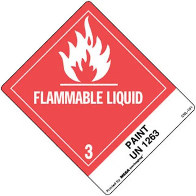 UN1263 D. O. T. Flammable Liquid Labels, Labels Measure: 4" x 4-3/4" (4" x 4.75" ), 500 Labels per Roll, Label Color: White / Red / Black, Paper Label Stock On Silicone Coated Release Paper, Made in USA, Labels Ship in 2-3 Days