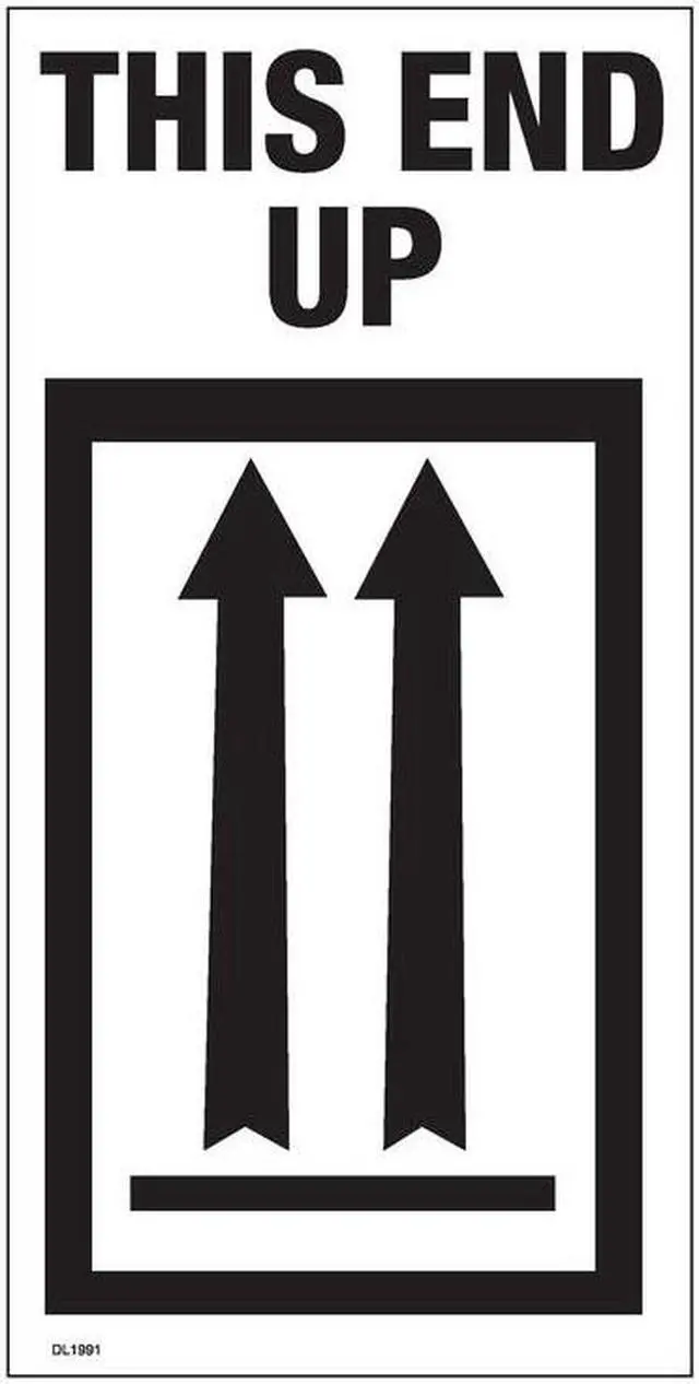 Labels Measure: 4" x 8", 500 Labels per Roll, Label Color: White/Black, "THIS END UP ARROWS", Paper Label Stock On Silicone Coated Release Paper, Made in USA, Labels Ship in 2-3 Days