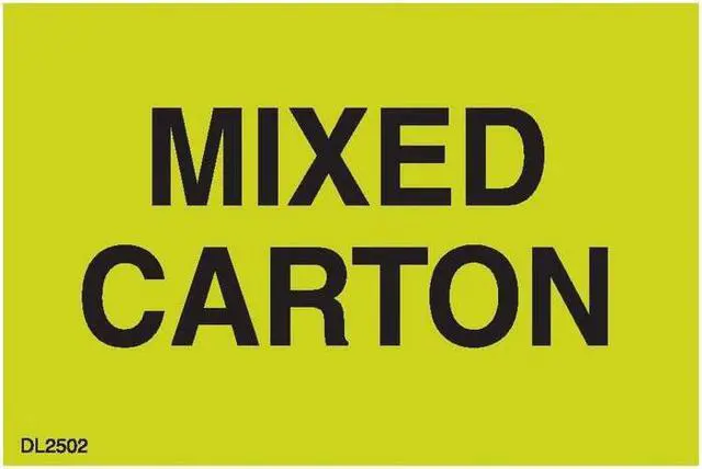Labels Measure: 2" x 3", 500 Labels per Roll, Label Color: FLR Green/Black, "MIXED CARTON", Paper Label Stock On Silicone Coated Release Paper, Made in USA, Labels Ship in 2-3 Days