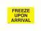 Labels Measure: 3" x 5", 500 Labels per Roll, Label Color: Yellow/Black, "FREEZE UPON ARRIVAL", Paper Label Stock On Silicone Coated Release Paper, Made in USA, Labels Ship in 2-3 Days