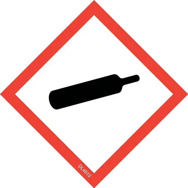 Labels Measure: 2" x 2", 500 Labels per Roll, Label Color: White with Red/Black, "HAZCOM-GAS CYLINDER", Paper Label Stock On Silicone Coated Release Paper, Made in USA, Labels Ship in 2-3 Days