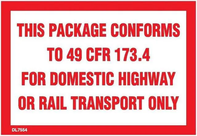 Use these labels to quickly note that a specific package conforms to 49 CFR- 173.13 regulations for hazardous materials transport via highway or rail.