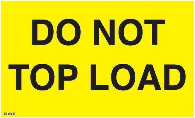 Labels Measure: 3" x 5", 500 Labels per Roll, Label Color: Bright Yellow /Black, "DO NOT TOP LOAD", Paper Label Stock On Silicone Coated Release Paper, Made in USA, Labels Ship in 2-3 Days
