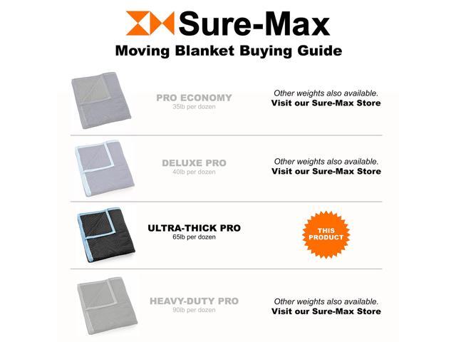 Sure-Max 8 Moving & Packing Blankets - Ultra Thick Pro - 80" x 72" (65 lb/dz weight) - Professional Quilted Shipping Furniture Pads Black