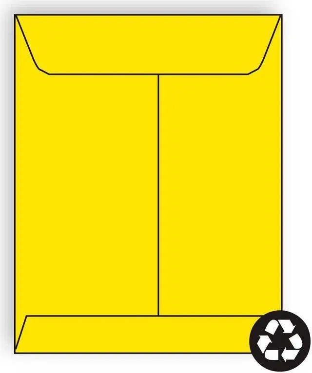 Open End Catalog Envelopes, 10" x 13", 28#, Recycled, Brightly Colored Yellow, Acid Free, Center Seam (Box of 500)