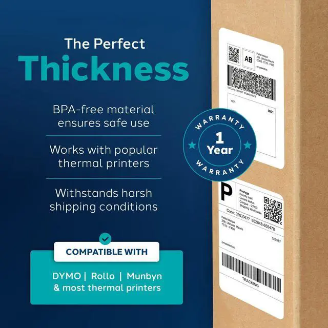 The durable construction resists ink smudges and scratches, keeping your labels readable. The perfect thickness guarantees smooth printing, and compatibility with top printers like DYMO 4XL and Rollo provides versatility.