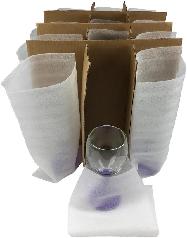Use a glass pack cell divider kit to protect wine glasses, water glasses, and other fine glassware. The dividers help protect crystal or glass from bumping against each other causing breakage. Glass dividers fit in a 1.5 cuft box UOFFICE Premium Small box and are easy to assemble and disassemble for storage. Foam pouches help to further protect the glasses from vibration and scratches. Use fragile label stickers or magic marker on the outside of corrugated boxes to identify breakable content,