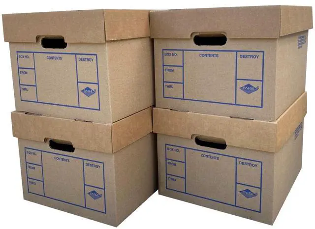 File Storage Boxes 4 Pack 200# Strength are sturdy and durable with handles for easy pickup and carry. The lift off lid makes it easy to open and close the file boxes when not in use. Store under the desk in the storage room to keep work areas tidy. Write the contents on the boxes with a magic marker for easy identification of contents. Great package for realtors, mortgage brokers or law offices.