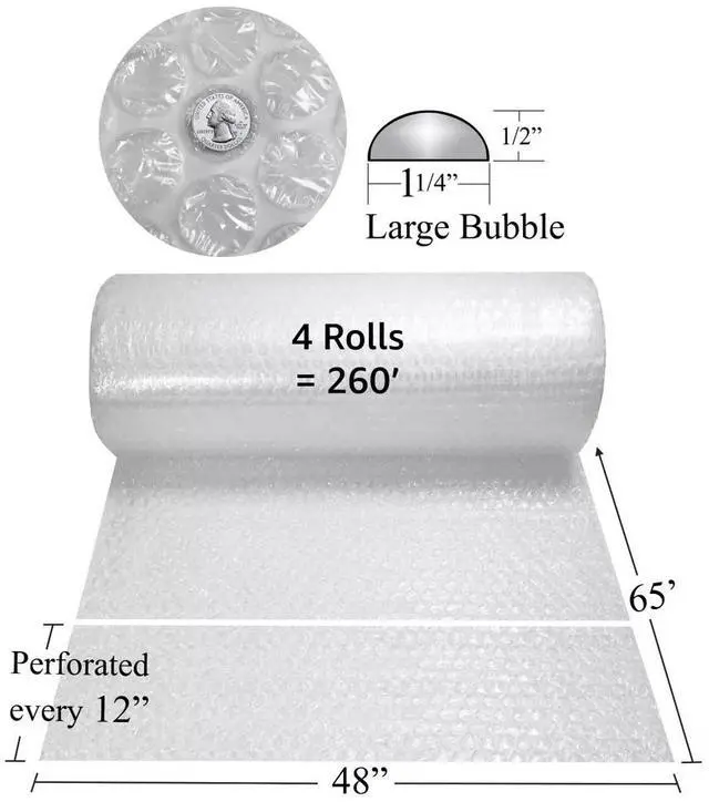 Large Bubble 260' x 48" Wide 1/2" Wrap - Large Bubble Cushion Rolls (¬Äù bubbles) are primarily used for protecting larger items and for void filling to prevent damage during transit. UOFFICE Large Bubble Rolls are highly recommended for preventing content shifting within shipping boxes.
