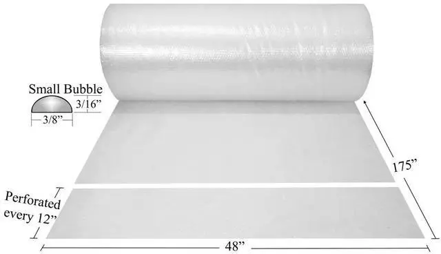 Small Bubble 175' x 48" Wide 3/16" Wrap - Bubble Packaging Wraps are made from polyethylene materials to maintain the safely wrapped items during shipping, protecting them from drastic shifting changes. Delicate items should be wrapped properly to endure bumpy roads and storage conditions.
