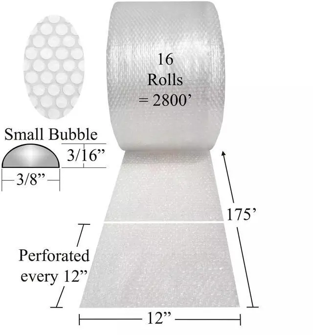 Small Bubble 2800' x 12" Wide 3/16" Wrap (16 Rolls at 175' each) - At UOFFICE, we understand the importance of ensuring your fragile items reach their destination safely. Our premium bubble wrapping rolls, featuring air-filled pockets, provide an exceptional layer of shock absorption. Whether you're wrapping delicate ceramics or sensitive electronics, our bubble wrapping minimizes the risk of breakage. Additionally, the surface protection qualities help prevent scratches and abrasions, guaranteeing your items arrive in pristine condition.