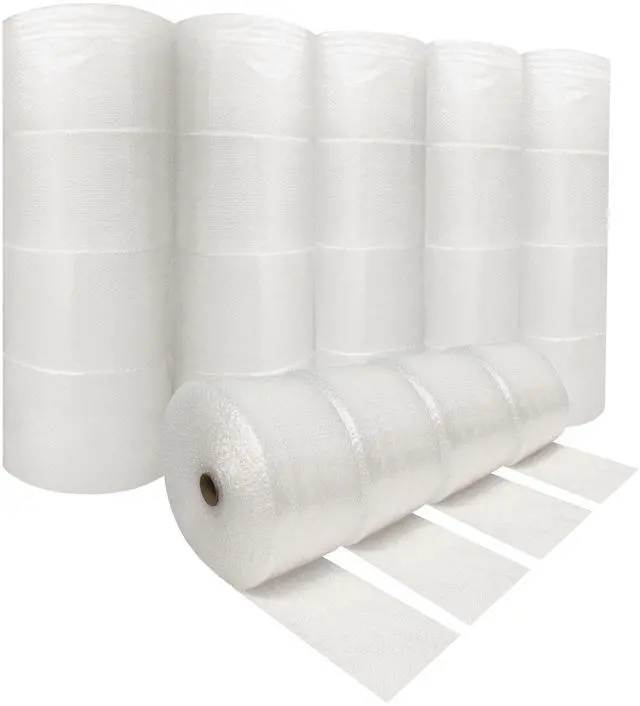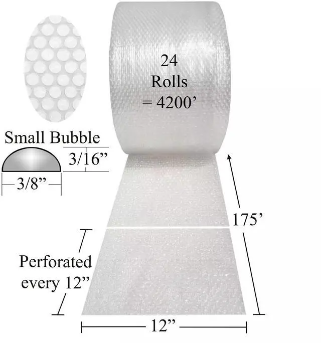 Small Bubble 4200' x 12" Wide 3/16" Wrap - UOFFICE innovative Bubble Cushion Rolls made from flexible, clear plastic, are essential tools for shipping fragile items. The evenly spaced air bubbles provide significant padding, separating and protecting delicate items in transit. These air pockets are available in various sizes depending on the item's needs and the level of protection required.