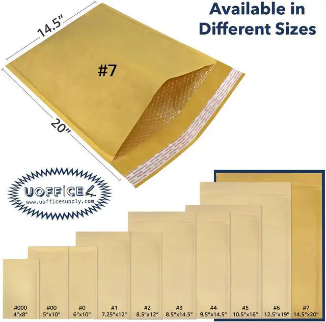Kraft Bubble Mailer 14.25" x 20" #7 - Pack of 400 is designed with a bubble cushioning interior that keeps items protected against shocks and vibrations. These mailers are a perfect combination of kraft paper and bubble roll. They can be used for office, business, and home applications. You can ship, mail, and store all types of items inside. Its self-sealing closure allows you to pack and ship your products safely and practically.