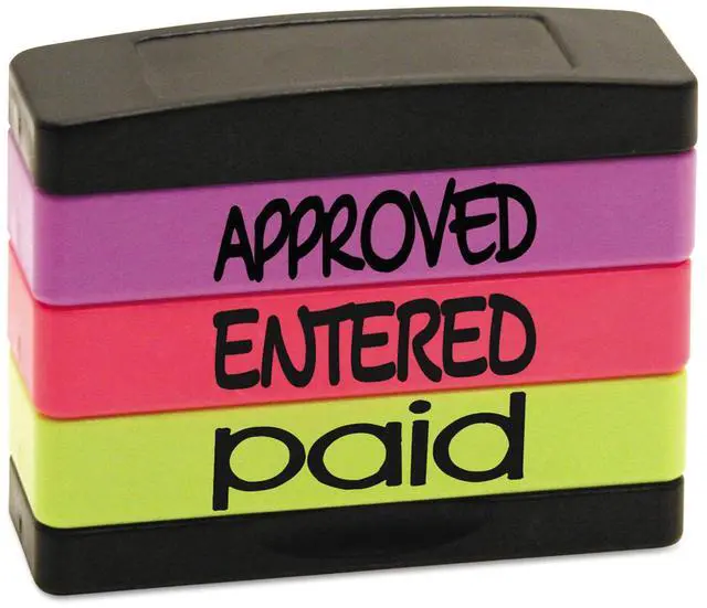 Interlocking Stack Stamp APPROVED ENTERED PAID 1.81" x 0.63" Assorted Fluorescent Ink 8802