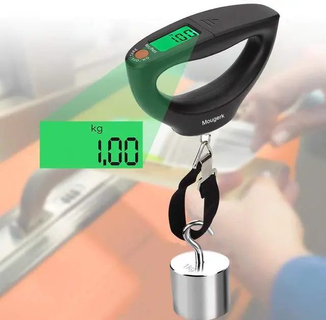 Specifications: LCD Display Material:ABS & stainless steel Capacity:50 kg / 110 lb Power supply:2 x AAA battery Not included Working voltage:2.4V-3.5V Working current:backlight on:I<10mA; backlight off:I<5mA Shutdown current:I<1uA Working temperature:10~40 Weight:0.2KG Package included: 1 x Digital Hanging Scale 1 x Manual Notice: 1.Ensure the scale be hung securely and keep anybody away the goods while weighing. 2.Avoid strike and impact when using. 3.When turn on the scale,LO or battery sign" appeared on the screen means the batteries are exhausted,plase change new battery;Please remove the batteries for avoiding leakage to damage the circuits if the scale is not use for a long time. 4.O_LD" appeared on the screen means weighing over 5% range;You need decrease the goods to avoid damage the scale.
