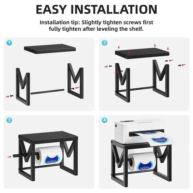 Easy to InstallSetting up this shipping label stand is a breeze. It comes with clear installation instructions and all the necessary components, allowing you to complete the setup in just minutes. The bottom provides extra storage space for office supplies such as tapes, labels, and other items.