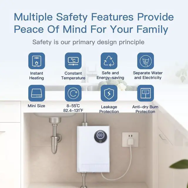 You can control the water temperature (28-55°C) by adjusting the water flow (large flow rate = low temperature; small flow rate = high temperature), providing you with hot water all year round.