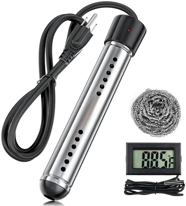 Portable Water Heater Electric, 2000W Immersion Water Heater with LCD Thermometer, Stainless Steel Immersion Heating Rod, Submersible Bucket Heater for Home Camping Bathtub Small Pool Outdoor Use