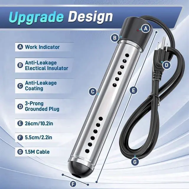 Premium Rust-Resistant BuildSubmersible water heater 304 stainless steel construction prevents scaling with transfer. Safety enhanced cover protects against accidental contact with heating elements. Immersed electric water heaters have good thermal conductivity. Adopting an integrated design, it has better insulation and airtightness.