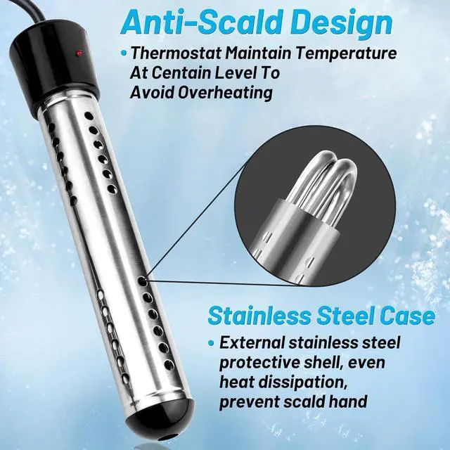 This NiaoChao immersion water heater heats your water in minutes. The included LCD thermometer allows you to easily check your desired water temperature. Made of high-quality materials, this submersible water heater will keep you warm every winter.