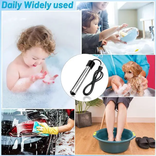 - Immersion heater has a wide range of applications and can be used for home, dormitory, farm and outside camping shower water heating.