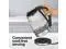 This glass kettle looks great on the kitchen countertop. Blue LED lights illuminate when water is heating for a soft blue glow.