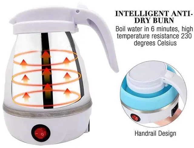 The electric kettle adopts a creative foldable design, the folded size is only: 7.2x5.2x3.8inch, easily fits into your suitcase and backpack, saves a lot of space when packing, easy to carry.