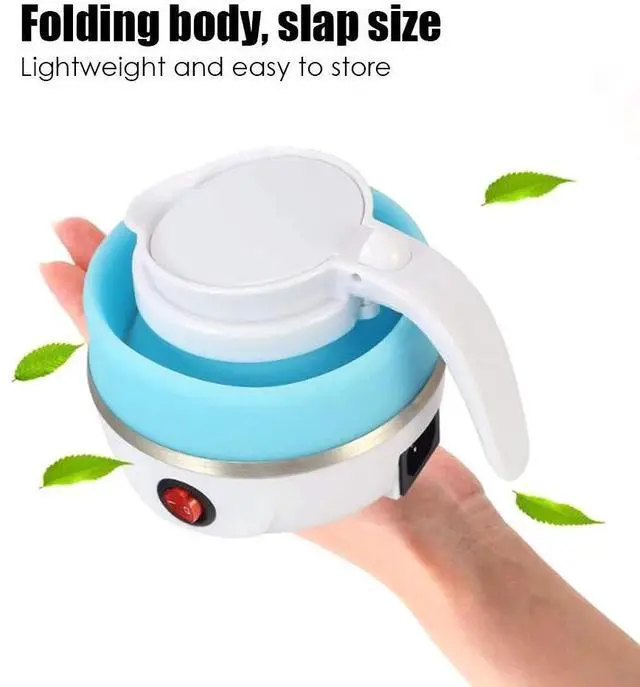 Travel Portable Foldable Electric Kettle, 0.6L Small Collapsible Hot Water Boiler For Coffee Tea (Blue)