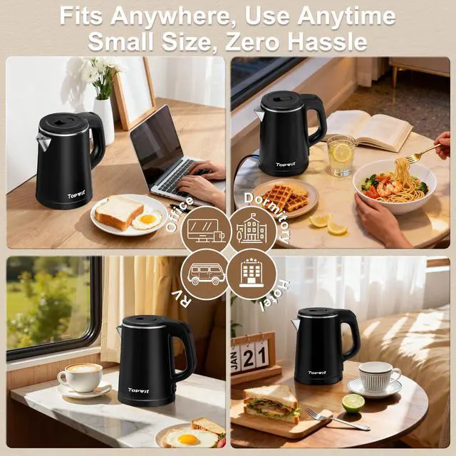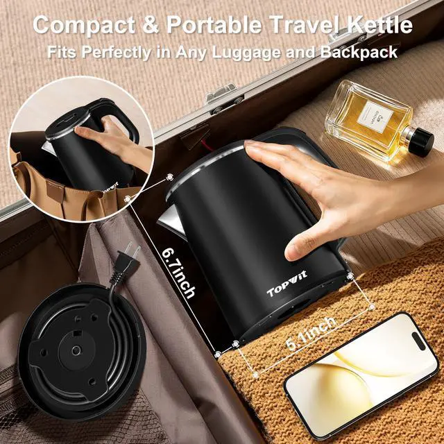 [Compact & Portable for Travel] - Take your personal kettle anywhere. This small electric kettle is lightweight and compact, with a storable power cord. It's your ideal portable companion for hotel stays, business trips, camping adventures, or keeping in your office drawer. Always have hot water on hand, wherever you are.