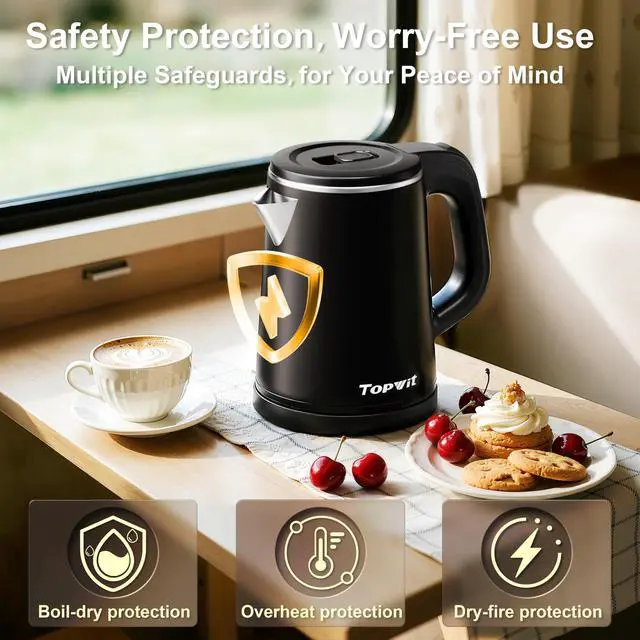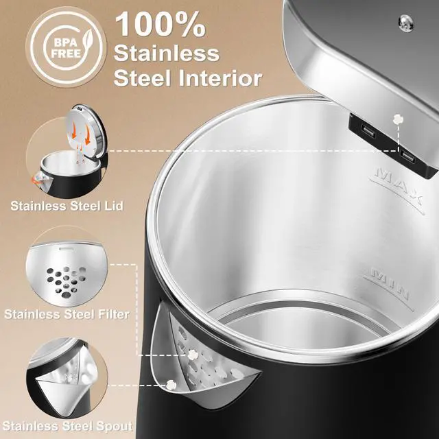 [Auto Shut-Off & Boil-Dry Protection] - Built for safety. This electric kettle features reliable auto shut-off and boil-dry protection, automatically powering off when water boils or if run dry, ensuring peace of mind for you and your family.