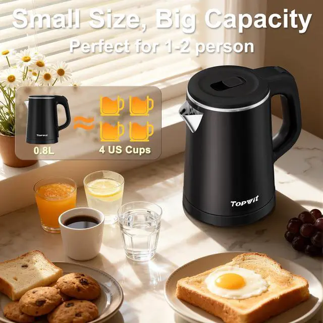 0.8L Small Electric Kettle, Portable Travel Kettle Stainless Steel - 800W Fast Boiling, Auto Shut-Off & Boil-Dry Protection, Tea Kettle for Home, Office, Business Trip, Hotel, Dorm
