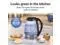 This glass kettle looks great on the kitchen countertop. Blue LED lights on the kettle illuminate when water is heating for a soft blue glow.