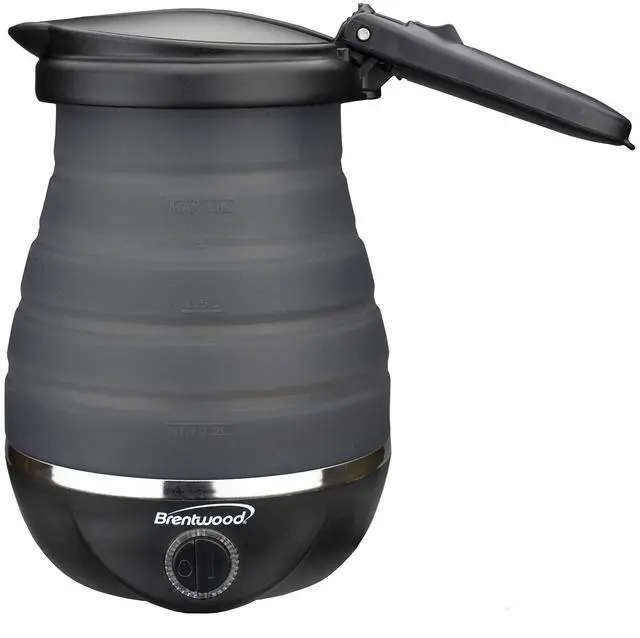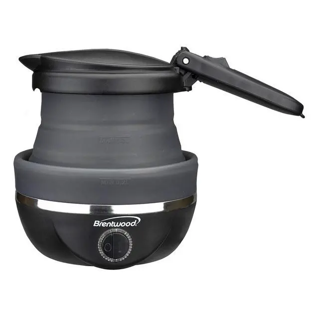 Brentwood Appliances KT-1508BK .85-Quart Dual-Voltage Collapsible-Travel Kettle (Black), 0.85Q