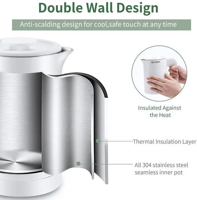 MEISON 0.6 Liter All Stainless Steel Small Electric Kettle Overview