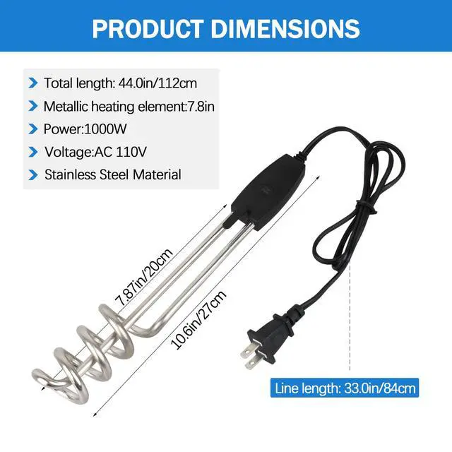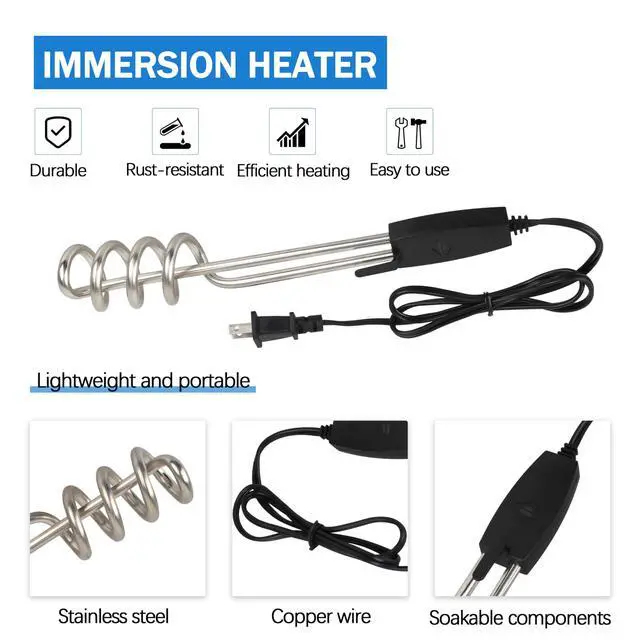 Immersion Heater, Submersible Water Heater,1000W-110V Portable Electric Immersion Water Heater