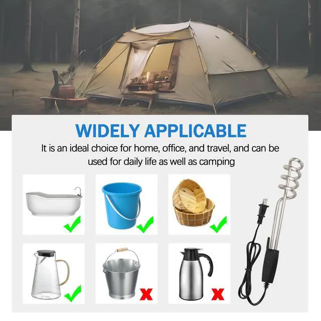 1000W-110V Portable Electric Immersion Water Heater fit for Camping Inflatable Pool Bathtub Water Bucket Heater (Stainless Steel) ?