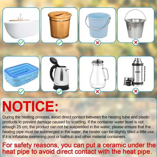 The 1000W immersion pool heater is able to quickly heat water, easily display the temperature, and enjoy the comfort of warm water, can be used on many occasions, for example, office heater, pool warmer, camping heater for tents, RV tankless water heater, pool water heater, bucket heater, etc.