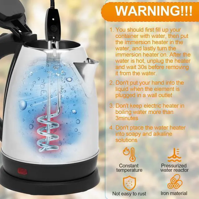 DURABLE, LONG-LASTING 3 plug tab on our submersible water heater plug connect 3 different copper wires | COMPACT AND PORTABLE Dual Voltage Portable Water Heater Electric Travel Accessories | COMPACT AND PORTABLE simple electric water heater elements for heating liquids |