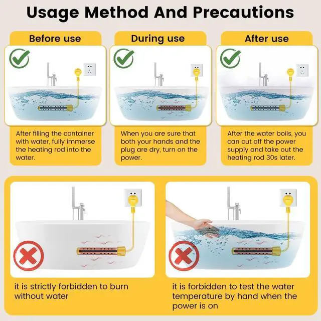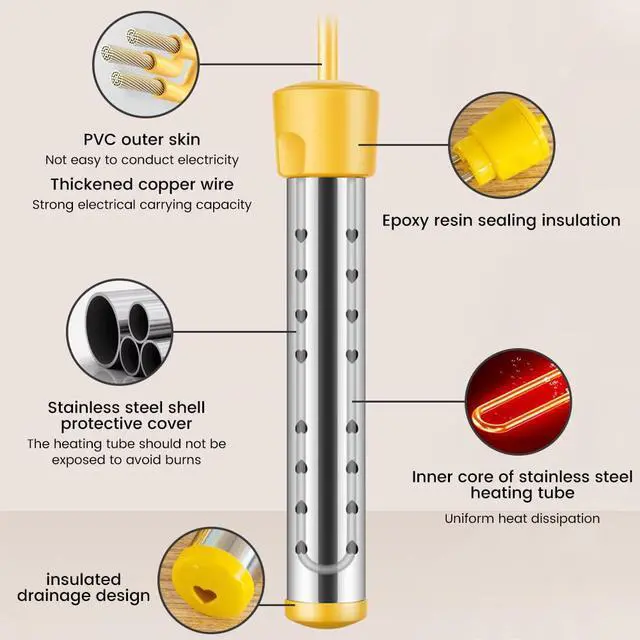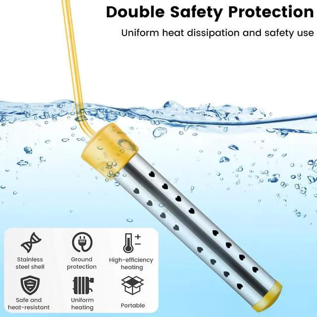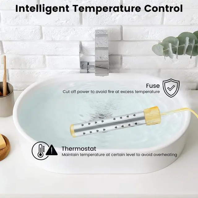 Immersion Water Heater 1500W, Portable Submersible Water Heater with Intelligent Temperature Control, Stainless Steel & Dry-Burn Protection, for Bathtub, Travel Camping, Hot Tub, Swimming Pool, Bucket