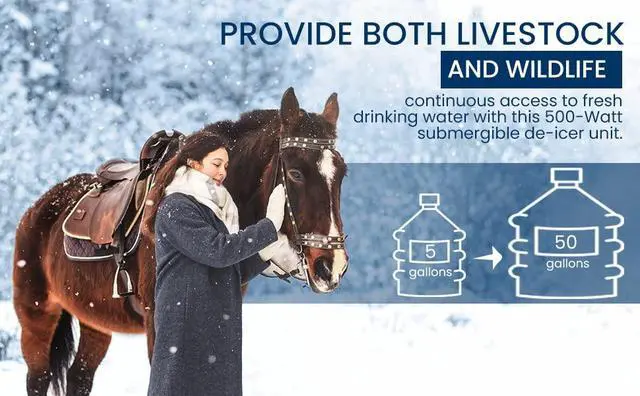 VERSATILE SUBMERGIBLE CHICKEN WATER HEATER: This 500-watt de-icer is designed to ensure continuous access to fresh drinking water for livestock, chickens, and wildlife. Ideal for 5 to 50-gallon containers, it's perfect for livestock tanks, water troughs, buckets, and even bird baths during the winter season.