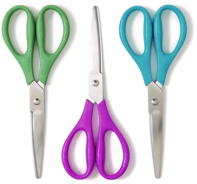 U-Eco Scissors 9.45" Long 3" Cut Length Straight Assorted Color Handles 3/Pack 6607U0124